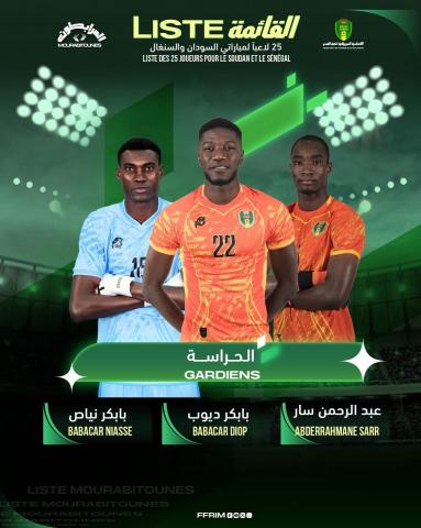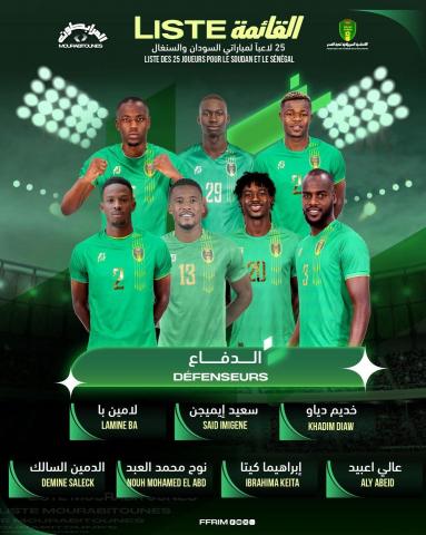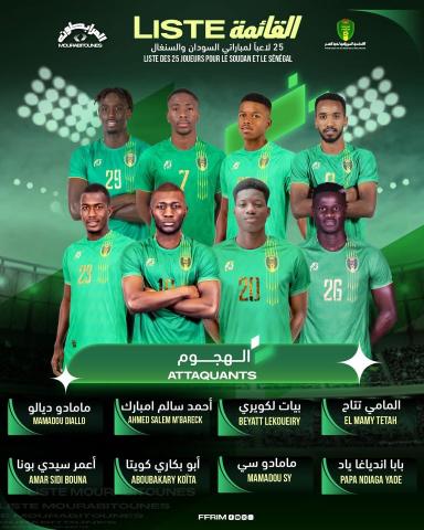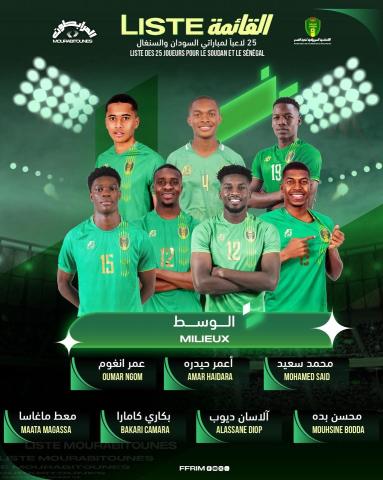 كشف مدرب المنتخب الوطني الأول "المرابطون " أريـتـز لـوبـيـز غـاراي عن قائمة اللاعبين التي اختارها وذلك لمواجهة السودان والسنغال لحساب الجولتين التاسعة والعاشرة من تصفيات كأس العالم 2026.