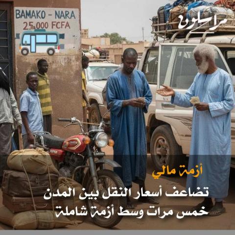 تشهد جمهورية مالي ارتفاعا غير مسبوق في أسعار النقل، حيث تضاعفت التكاليف خمس مرات، وفق ما أفادت به صحف محلية هذا الأسبوع.