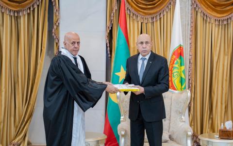 واستلم الغزواني التقرير من رئيس المحكمة، حميد ولد أحمد طالب أثناء استقباله بالقصر الرئاسي.