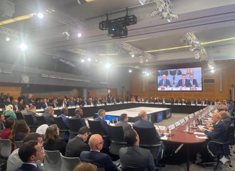 عقد وزراء الاقتصاد المالية ومحافظو البنوك المركزية في الدول العربية أمس في واشنطن اجتماعهم السنوي مع صندوق النقد الدولي بمشاركة وزير الشؤون الاقتصادية والتنمية عبد الله ولد سليمان ولد الشيخ سيديا و المديرة العامة للصندوق كريستالينا جورجيفا ومحافظ البنك المركزي الموريتاني محمد الأمين ولد الذهبي.