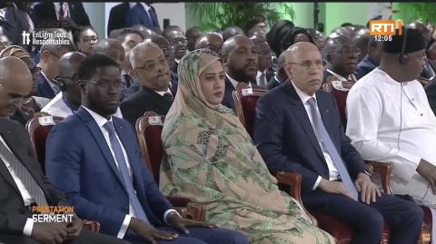 وحضر إلى جانب الرئيس السيدة الأولى مريم محمد فاضل الداه حيث حضرت مراسم التنصيب .