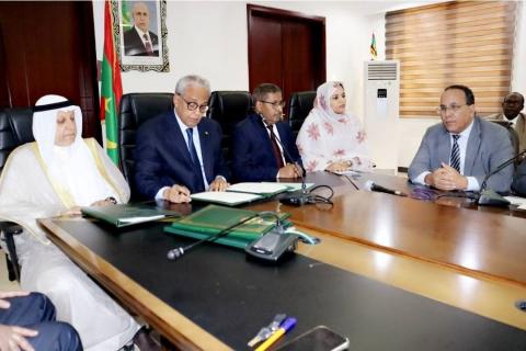 وقع وزير الشؤون الاقتصادية والتنمية عبد الله سليمان الشيخ سيديا، اليوم اتفاقيتي تمويل مع المدير العام ورئيس مجلس إدارة الصندوق العربي للإنماء الاقتصادي والاجتماعي، فوزي يوسف الحنيف وتبلغ القيمة الإجمالية للاتفاقيتين 32 مليون دينار كويتي، أي ما يعادل 4.130 مليون أوقية جديدة.