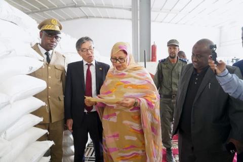 تسلمت مفوضة الأمن الغذائي فاطمة بنت خطري، رفقة السفير الياباني أوتشيدا هيرويكي، اليوم في مخازن المفوضية في توجنين شحنة من الأرز ( 4331 طن ) وهي هدية من اليابان في إطار برنامج العون الغذائي الياباني لموريتانيا لسنة 2024.