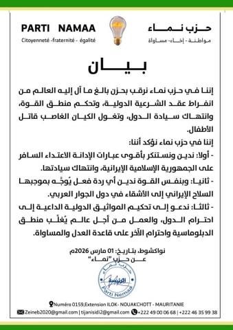 ودعا " نماء " إلى تغليب المواثيق الدولية ومنطق الدبلوماسية وإحترام الآخر .