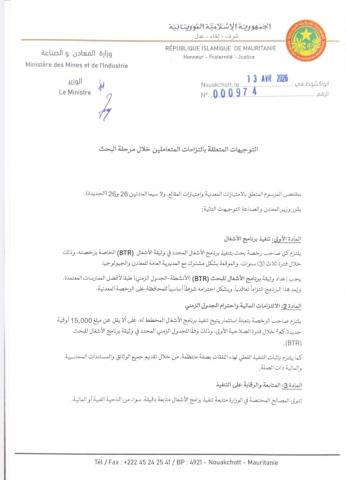 الزمت وزارة المعادن والصناعة بفرض حزمة من التعليمات التنظيمية وذلك من أجل ضبط أنشطة البحث والاستغلال المعدني مشيرة أن هذه التوجيهات ستدخل حيز التنفيذ بداية 13 أبريل الجاري.