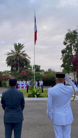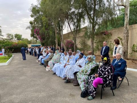 و حضر مراسم احتفالية ممثلين السلطات الموريتانية وممثلي السلك الدبلوماسي ومحاربين قدامى وأفراد الجالية الفرنسية