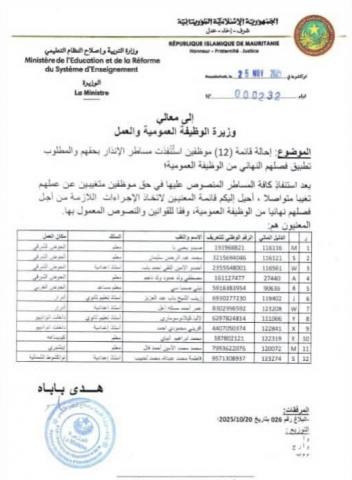 أحالت وزارة التربية وإصلاح نظام التعليم أسماء 12 مدرسا إلى وزارة الوظيفية العمومية لاتخاذ الإجراءات بفصلهم نهائيا من وظائفهم.