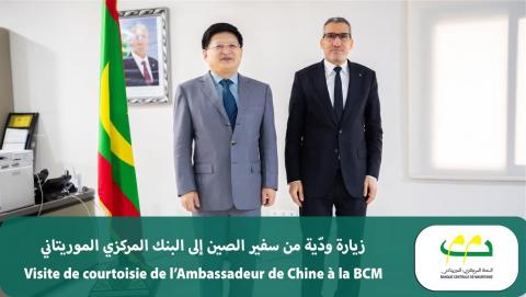 أدى السفير الصيني السيد تانغ جونغدونغ زيارة ودية لمحافظ البنك المركزي السيد محمد الأمين الذهبي
