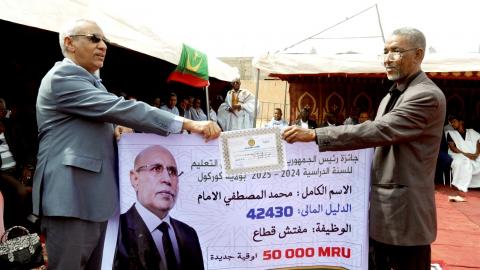 تم زوال اليوم الجمعة خلال حفل أقيم في مدرسة صلاح الدين في مدينة كيهيدي أشرف عليه والي كوركول محمد المختار ولد عبدي تكريم 44 من أفراد الطواقم التربوية بالولاية بعد الإعلان قبل أيام عن فوزهم بجائزة التميز التربوي لهذ العام، وهي الجوائز التي تبلغ 50.000 أوقية جديدة لكل فائز.