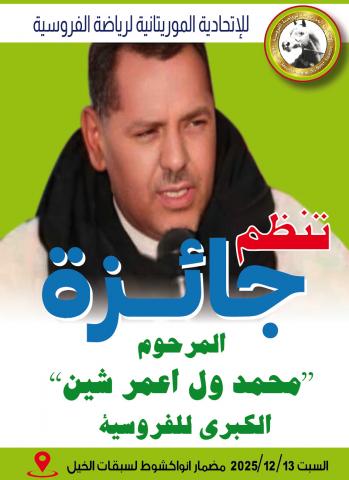 أعلنت الاتحادية الموريتانية لرياضة الفروسية تنظيم سباق تعطى فيها جوائز تحت اسم : جائزة المرحوم محمد ولد اعمر شين