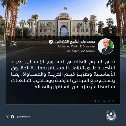 أكد الرئيس محمد الشيخ الغزواني التزامه بحماية حقوق الانسان وتعزيز قيم الحرية والمساواة .