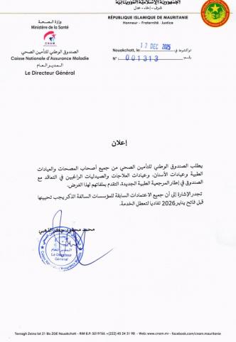 ودعا الصندوق العيادات الطبية الخاصة والصيدليات المهتمة لتقديم ملفاتها قبل بداية شهر يناير 2026.