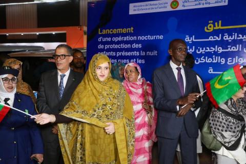أشرفت وزيرة العمل الاجتماعي والطفولة والأسرة، السيدة صفية انتهاه، رفقة معالي الوزير المكلف بالأمانة العامة للحكومة، مختار الحسينو لام، ووالي نواكشوط الغربية، السيد حمود ولد امحمد، مساء اليوم الاثنين على انطلاق العملية الميدانية المخصصة لحماية الأطفال الموجودين ليلاً في الشوارع والأماكن غير الآمنة بالعاصمة نواكشوط، تحت شعار:"معا لحماية أطفالنا".