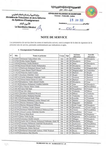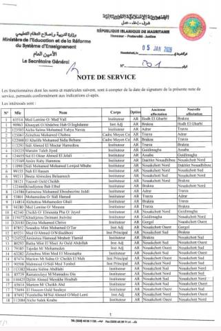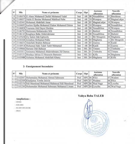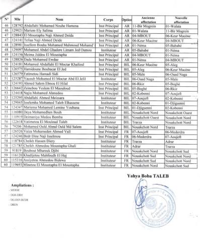 وشملت اللوائح عشرات المدرسين، الذين استفادوا من حقهم في التحويل عن طريق التبادل بين مختلف المناطق، بمافيها نواكشوط والداخل.