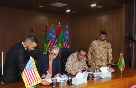 أعلنت السفارة الأمريكية بنواكشوط أن القائمة بالأعمال وكالة، كورينا آر. ساندرز، وقعت منتصف ديسمبر الماضي اتفاقية مع قائد الأركان العامة للجيوش الموريتانية، الفريق محمد ولد الرايس، لنقل معدات عسكرية أمريكية إلى موريتانيا.