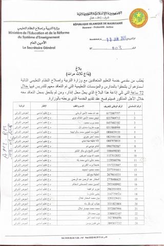 وحسب اللائحة فإن المدرسين المتغيبين يعملون بمؤسسات تعليمية في مناطق من الداخل والعاصمة نواكشوط.