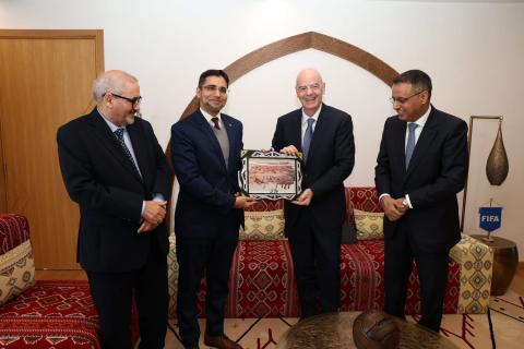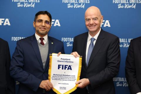 وبحث الوزير مع رئيس أعلى هيئة كروية عالمية "FIFA” وجهات النظر حول الشراكة القائمة بين الوزارة والاتحاد الدولي لكرة القدم والاتحادية الموريتانية لكرة القدم خاصة بحث والسعي لتعزيز وتطوير البنى التحتية الرياضية.