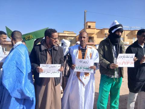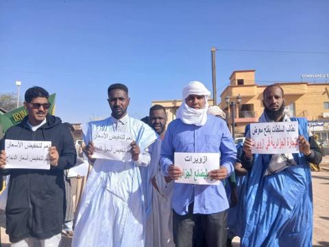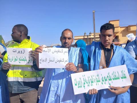نظم سكان مدينة ازويرات، صباح اليوم وقفة إحتجاجية أمام مباني ولاية تيرس، للمطالبة بتخفيض الأسعار والحد من المضاربات في السوق.