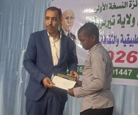 إحتضنت دار الشباب الجديدة بمدينة ازويرات، ليلة البارحة، حفل توزيع جوائز النسخة الأولى من مسابقة والي تيرس زمور للعلوم الشرعية والتطبيقية والثقافة العامة التي أجريت قبل أيام وتنافس فيها طلاب الإعدادية على مستوى مدينة ازويرات.