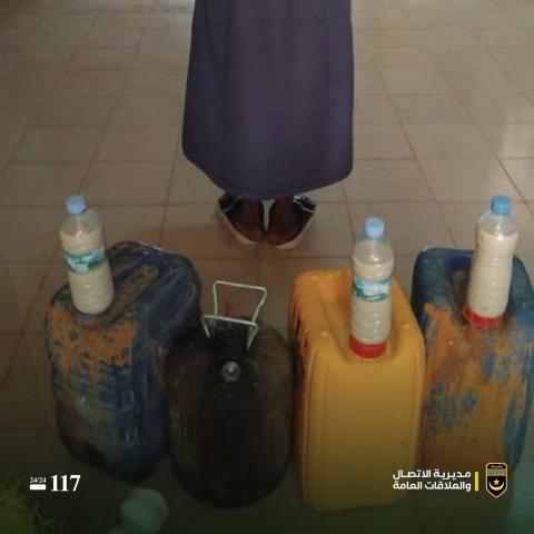 وأفادت أنه عقب عملية التفتيش عثرت الشرطة بحوزة المشتبه به على ثلاث قنينات ،سعة كل واحدة منها 20 لتراً مملوءة من المشروب المذكور إضافة إلى قنينة غاز تستخدم في عملية التخمير.